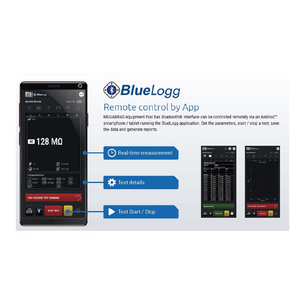 • Interfaccia Bluetooth: Consente il controllo remoto tramite dispositivi Android utilizzando l’applicazione BlueLogg, permettendo di scattare foto degli oggetti in prova, registrare coordinate GPS e aggiungere commenti vocali per ogni misurazione.